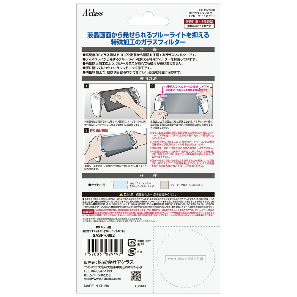| 商品名 | PS Portal用強化ガラスフィルターブルーライトカット 【864】 |