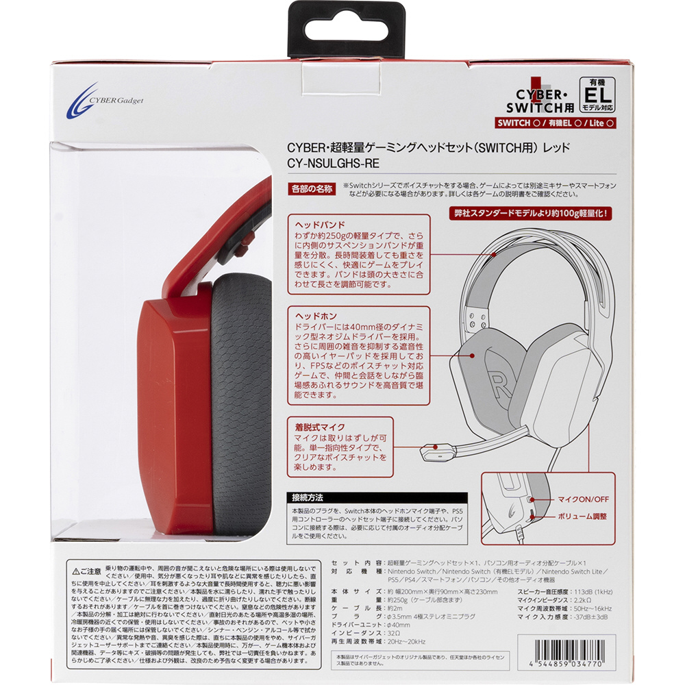 SWITCH用超軽量ゲーミングヘッドセット レッド CY-NSULGHS-RE