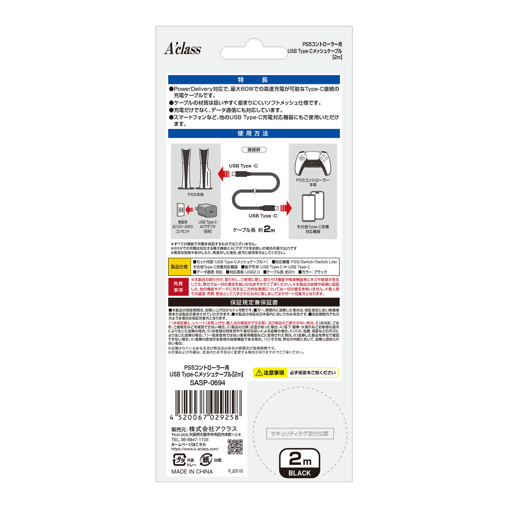 PS5コントローラー用USB Type-Cメッシュケーブル 2m SASP-0694 【864】