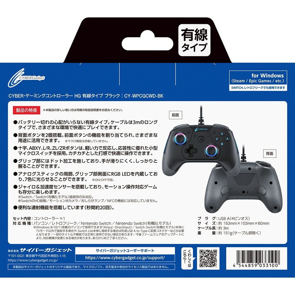 ※本製品のアップデートを行うには、CYBER・ゲーミングコントローラー HG シリーズサポートページよりコントローラー更新ツールと