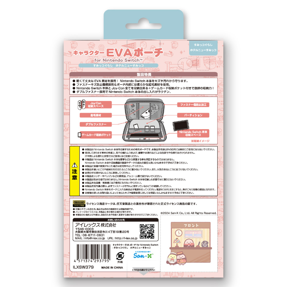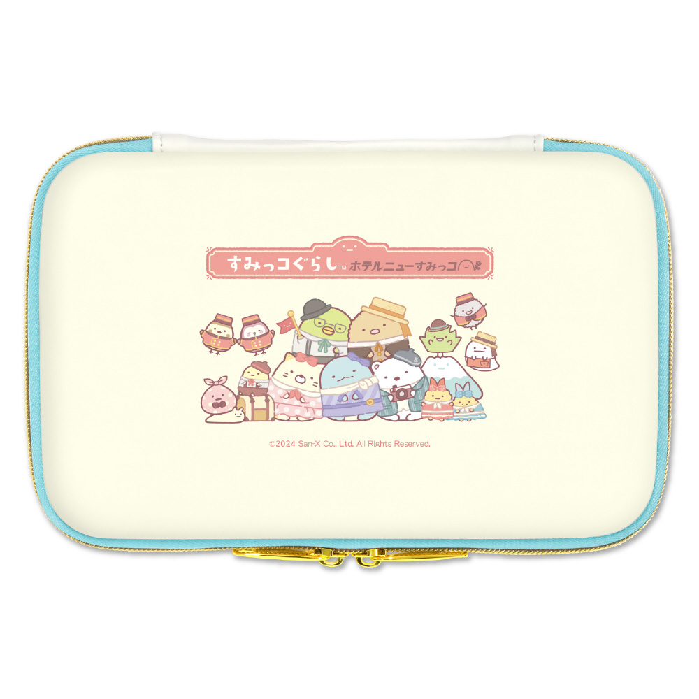 San-Xの人気キャラクター「すみっコぐらし(ホテルニューすみっコ)」をあしらったかわいいEVA素材のニンテンドーSWITCH用セミハードポーチです。