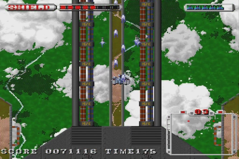 全方向任意スクロールのシューティングゲーム。