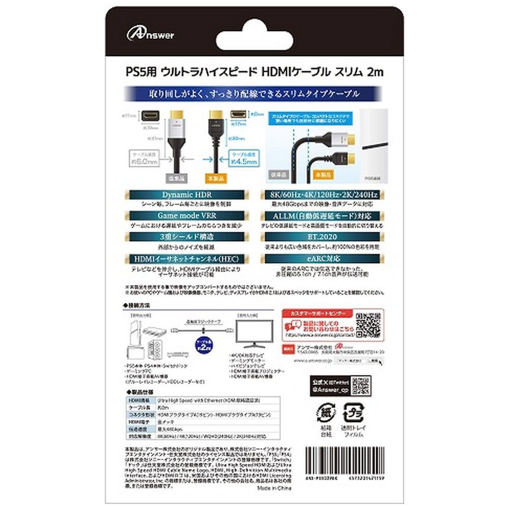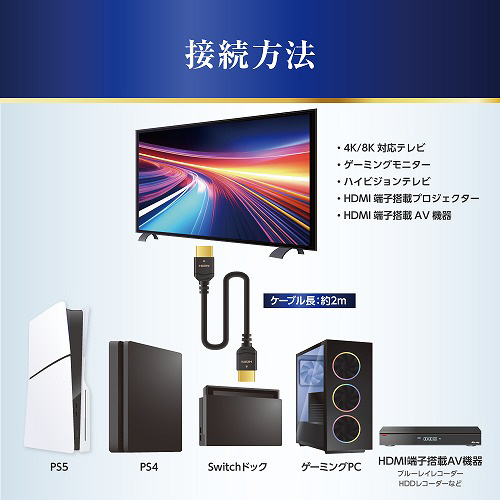 PS5用 ウルトラハイスピード HDMIケーブル スリム 2m