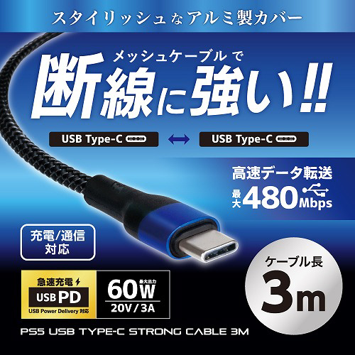 | 商品名 | PS5用 USB Type-C ストロングケーブル 3m |