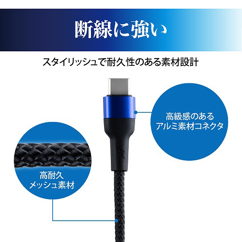 充電&データ転送に対応したケーブル長約3mのCtoCケーブル!