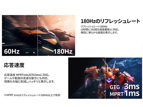 最大リフレッシュレート:180Hz
