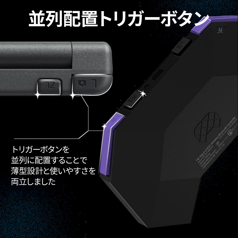 ボタンやスティック、トリガーの配置や押し心地など細部までこだわった設計で、ゲームへの没入感を高めます。