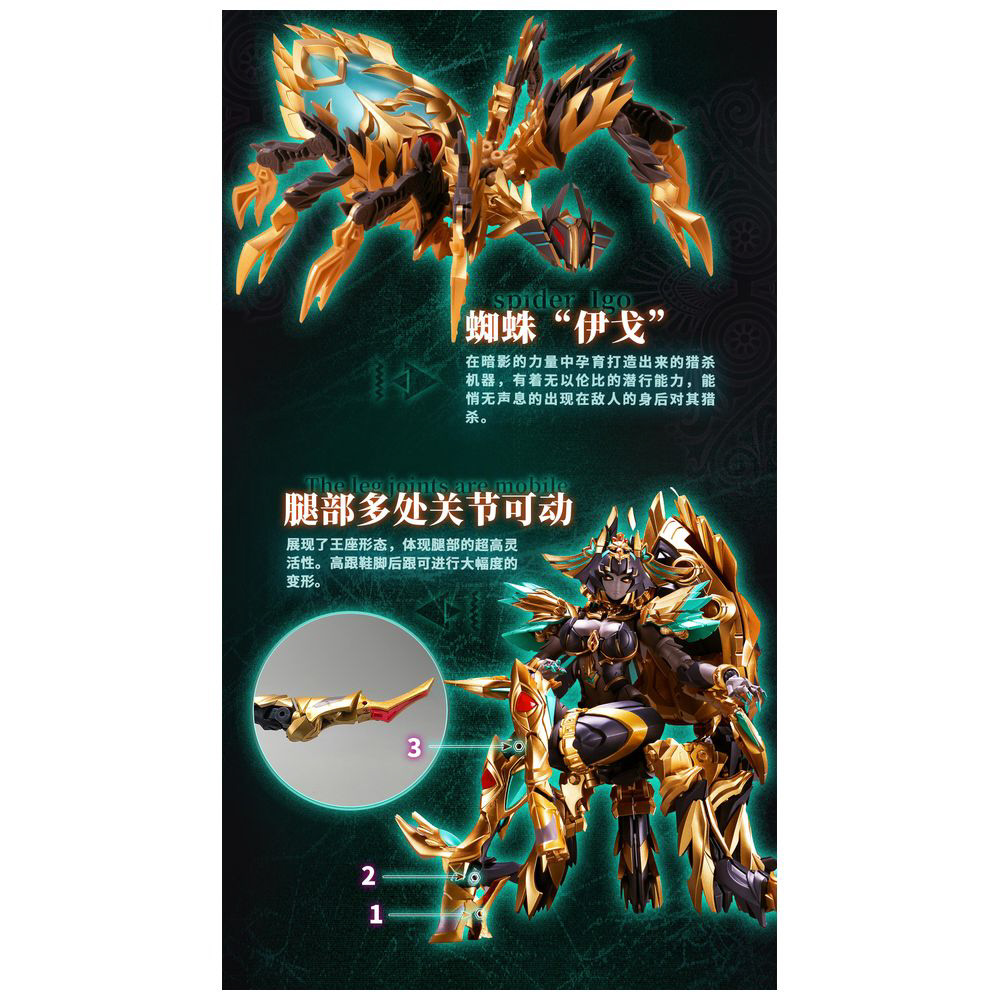 彼女は人型からスパイダーに変形可能で、変幻自在で敵を翻弄するその姿は、まさに闇の女王だ!