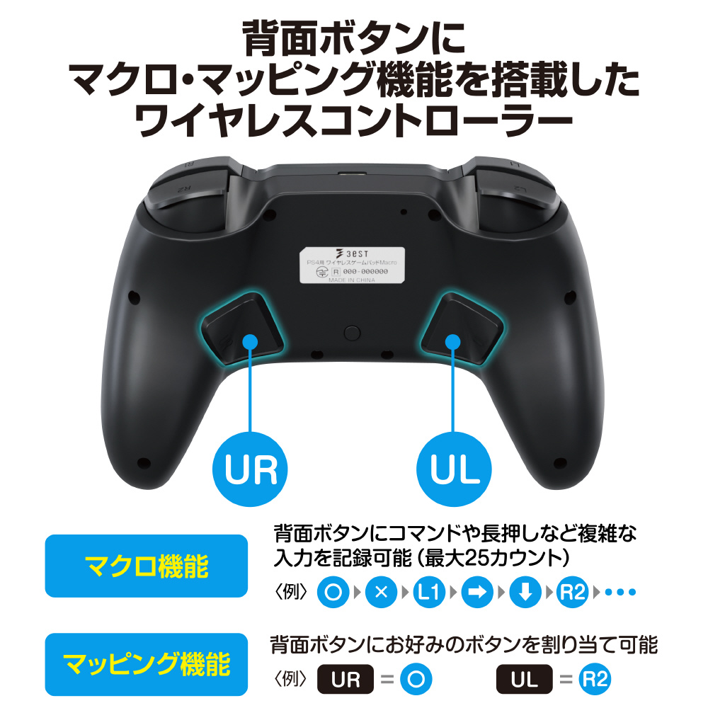 PS4用ワイヤレスゲームパッドMacro ブラック [GU-P4A014]