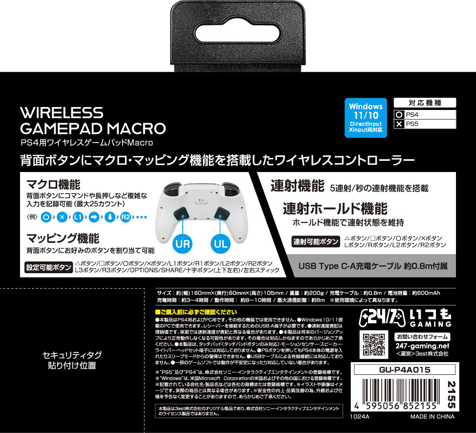 | 商品名 | PS4用ワイヤレスゲームパッドMacro ホワイト [GU-P4A015]【864】 |