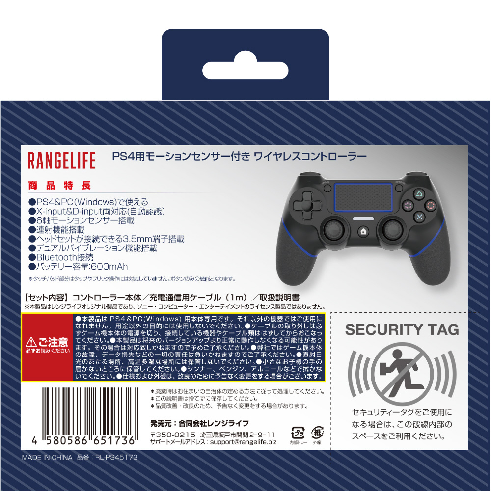 | 商品名 | PS4用ワイヤレスコントローラ ブラック&ブルー [RL-PS45173] |