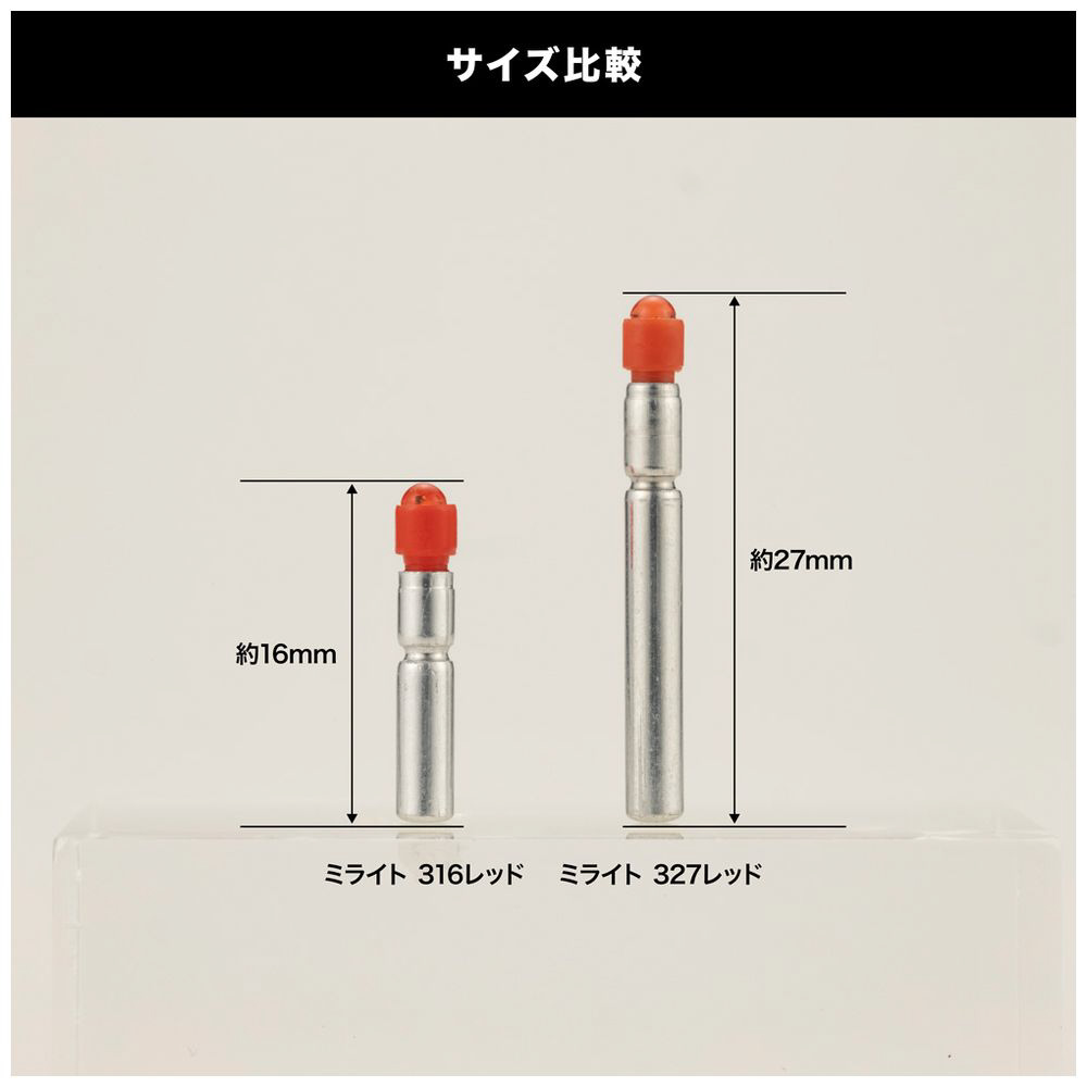 ■「316レッド」は全長約16mmの容量12mAh(電池寿命は約7時間)。
