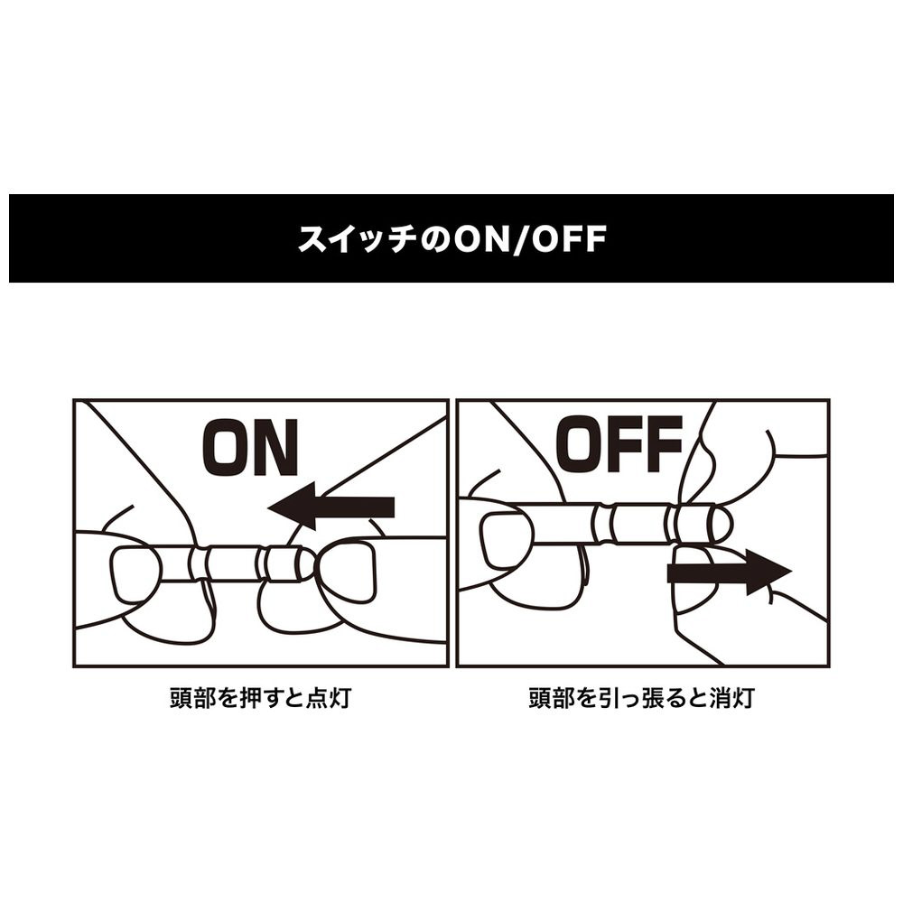 ■頭部LEDを押し込むことで点灯、引っ張ることで消灯します。
