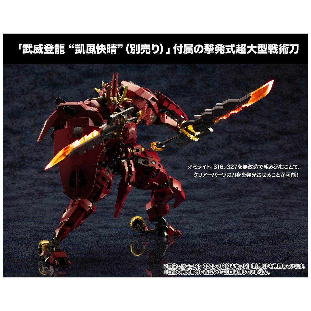 ■「ヘキサギア 武威登龍 “凱風快晴”(別売)」に付属する「撃発式超大型戦術刀」は、ミライト316、327を無改造で組み込むことで、