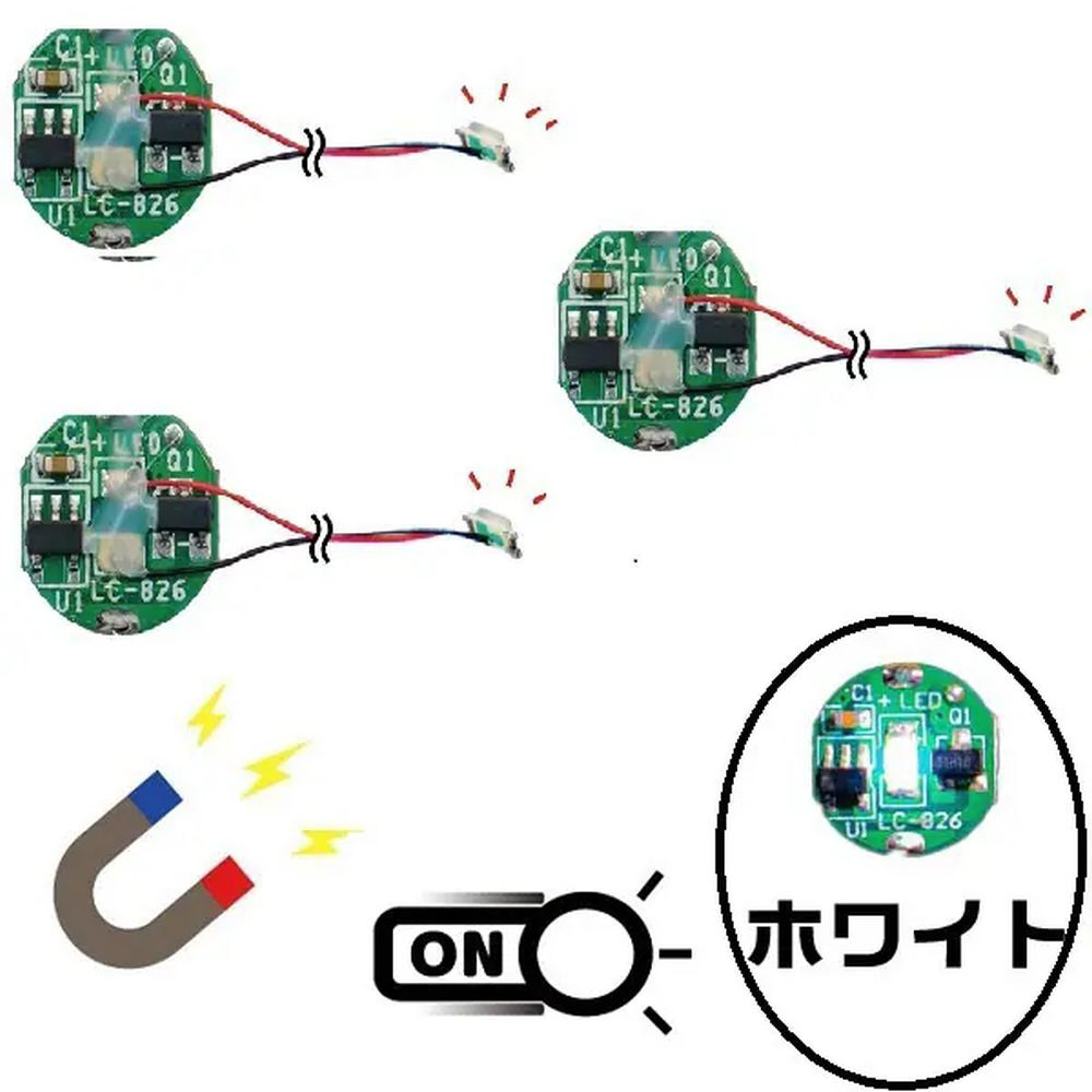 磁石を近づけることでLEDのオン/オフ切り替えが可能。ケースや筐体、部品の外側から内側のLEDモジュールを直接触れずに点灯させることが出来ます。