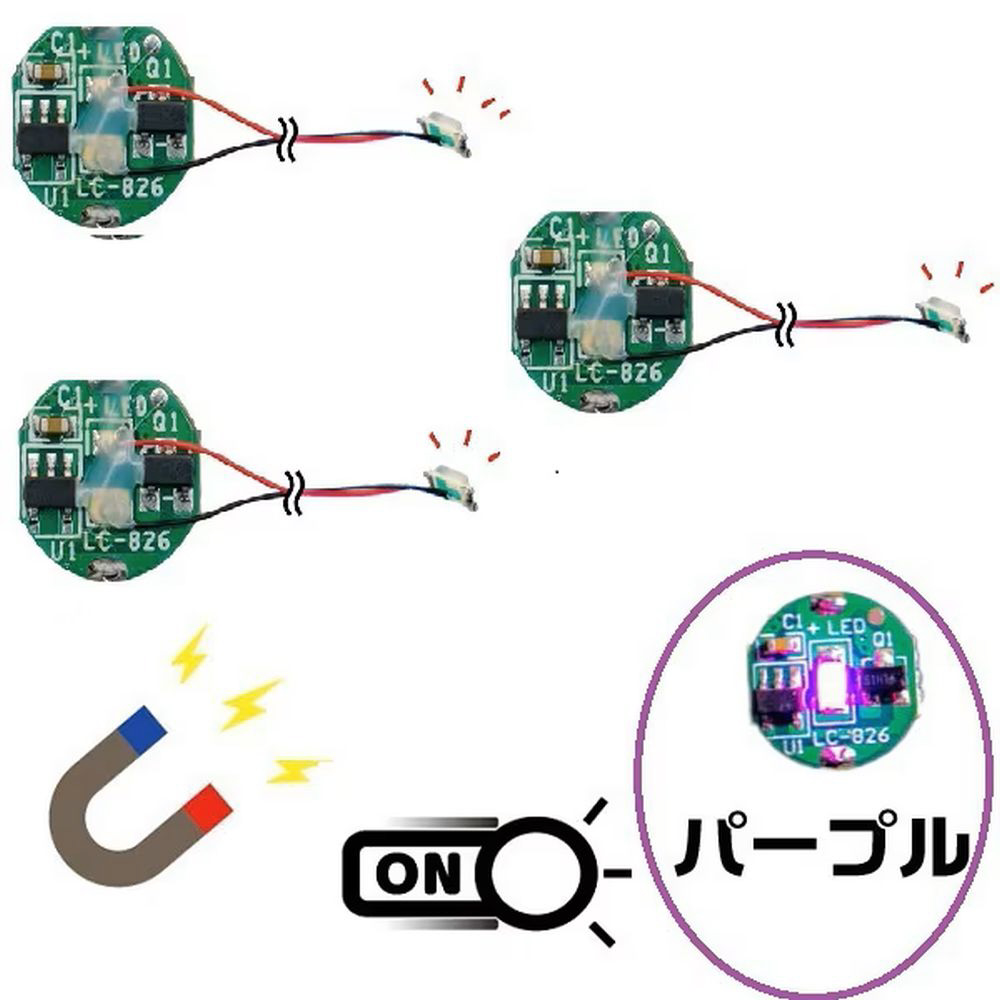 磁気スイッチ付マイクロLEDモジュール リード線仕様 パープル 3個セット パープル ADMGLWPR3