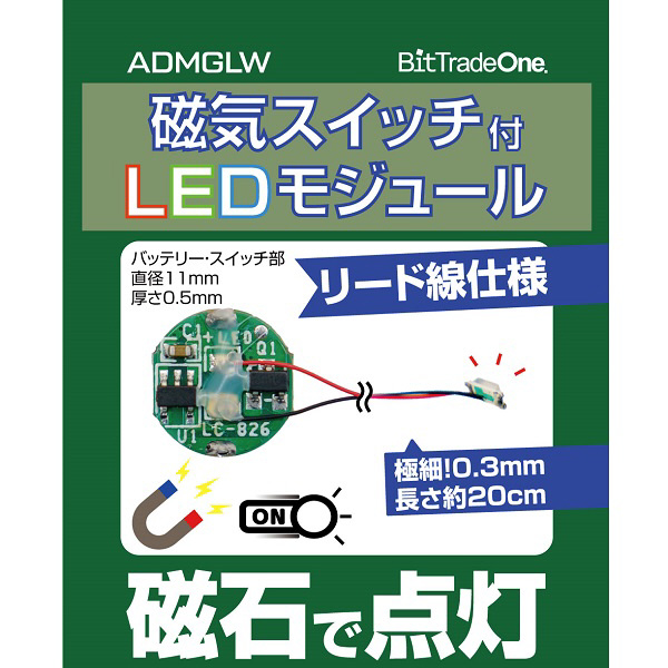 磁石を近づけることでLEDのオン/オフ切り替えが可能。ケースや筐体、部品の外側から内側のLEDモジュールを直接触れずに点灯させることが出来ます。