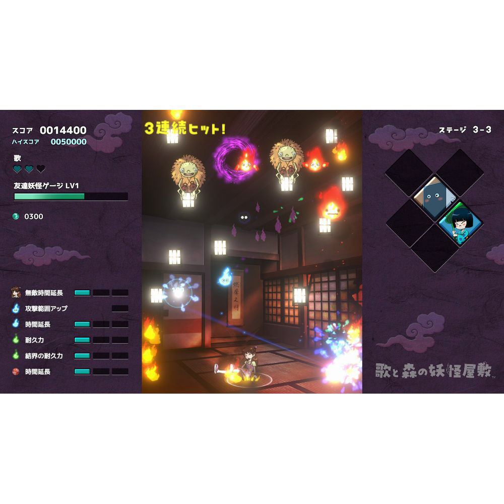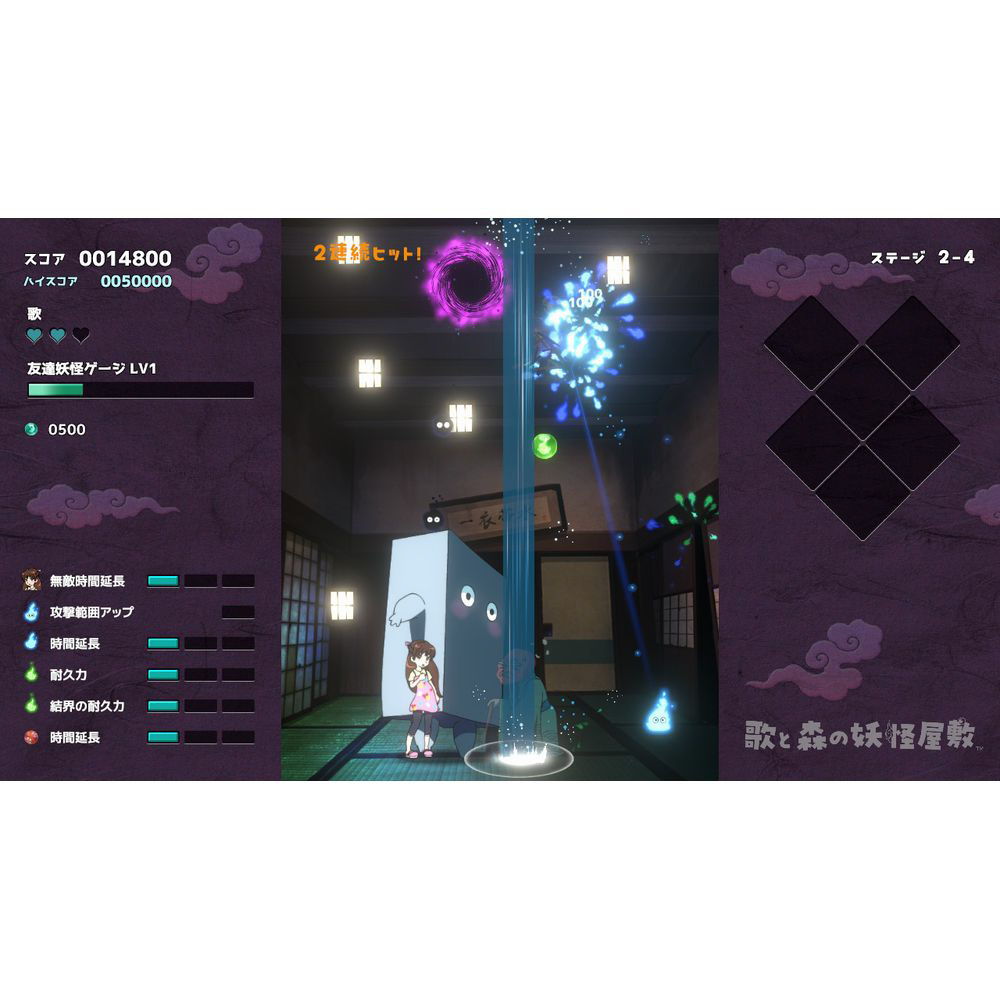 可愛いけどちょっと怖い?人魂ミューを操作して、個性あふれる妖怪たちから歌を守ろう!