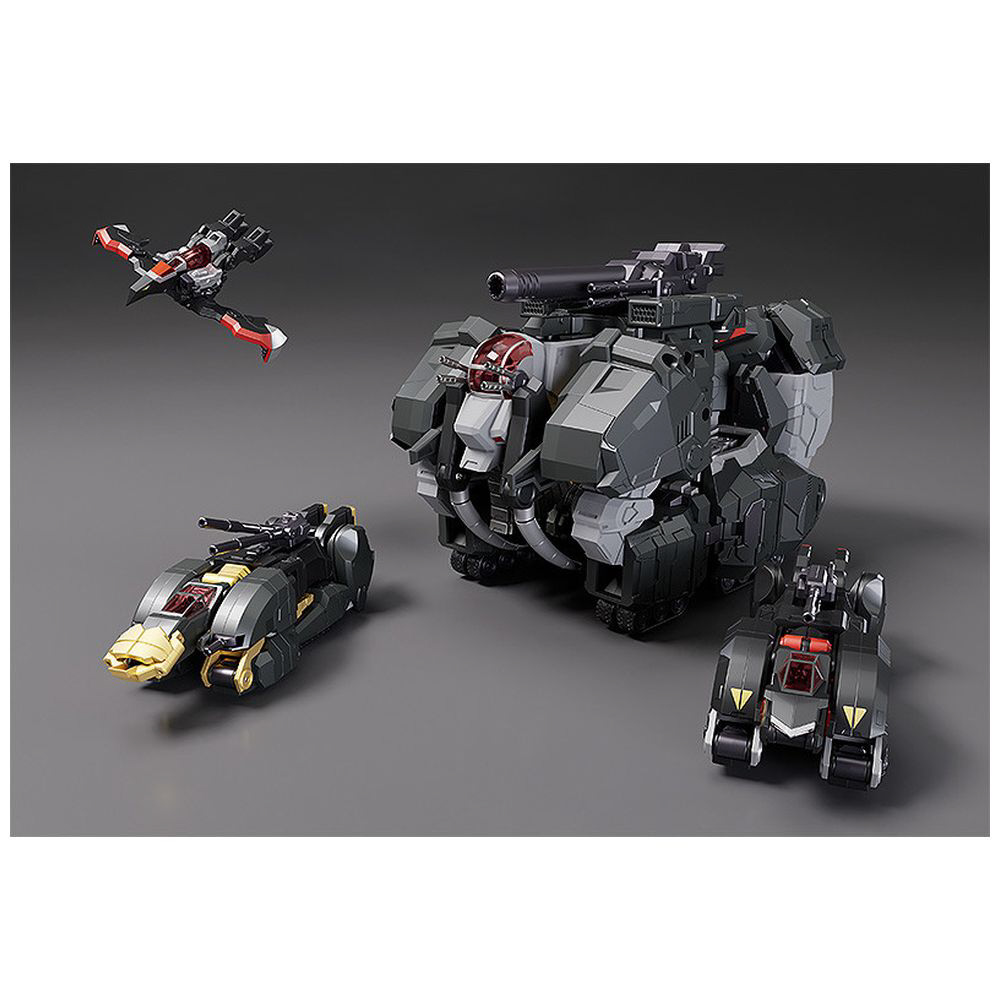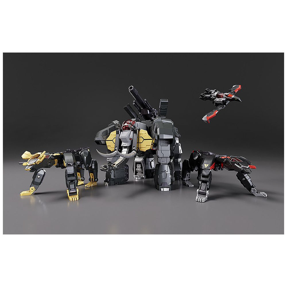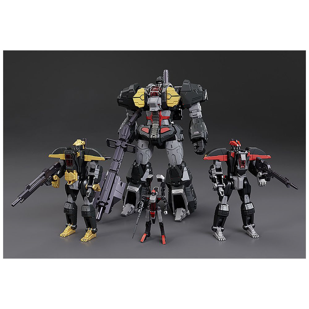 ■「イーグルファイター」「ランドライガー」「ランドクーガー」「ビッグモス」4体の獣戦機の変形と合体を余剰パーツ無しで再現。