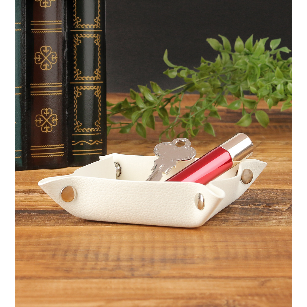 外寸:(約)11.4×11.4cm、厚み:29mm底面:(約)7.8×7.8cm、素材:PUレザー