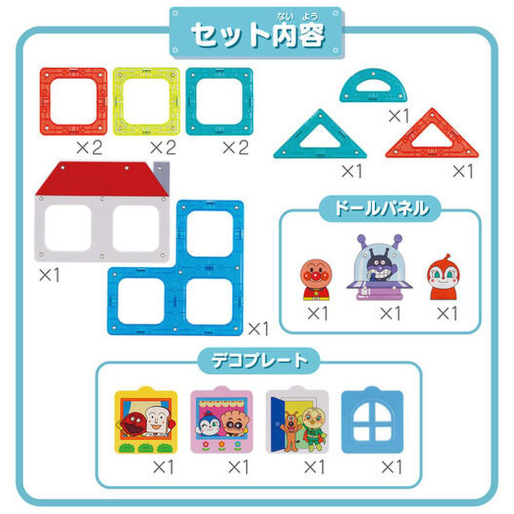 ドールやパンこうじょう、バイキンUFOなどのパーツや、自由にはめられるデコプレートで、
