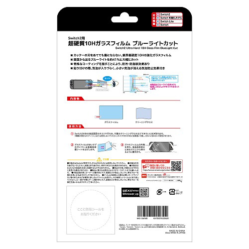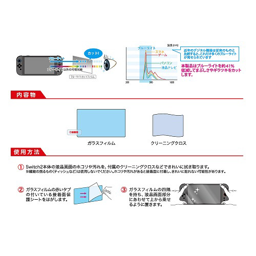 | 商品名 | Switch2用 超硬質10Hガラスフィルム ブルーライトカット [ANS-SW168] |