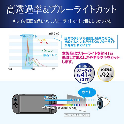 約92%の透過率で、画面の色味や画質を損なうことなくゲームをプレイできます。