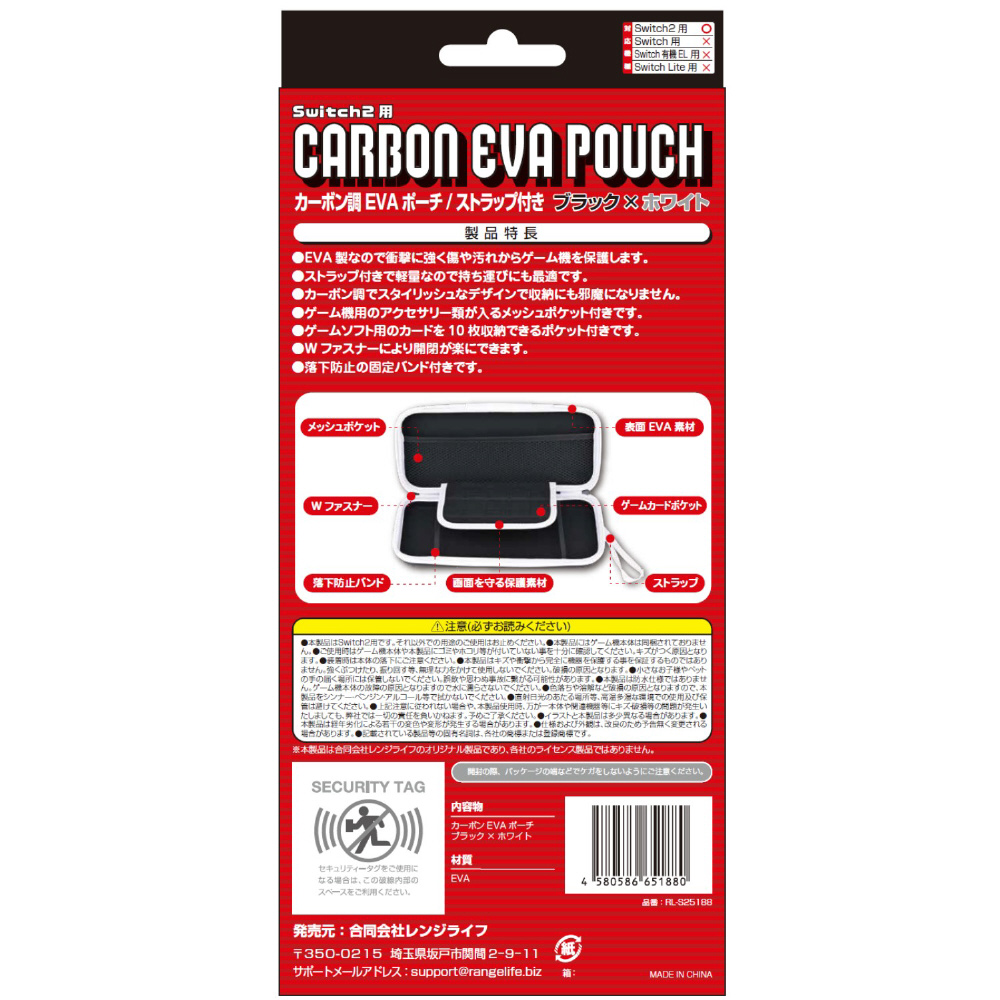 Switch2用カーボンEVAポーチ ブラック×ホワイト [RL-S25188]