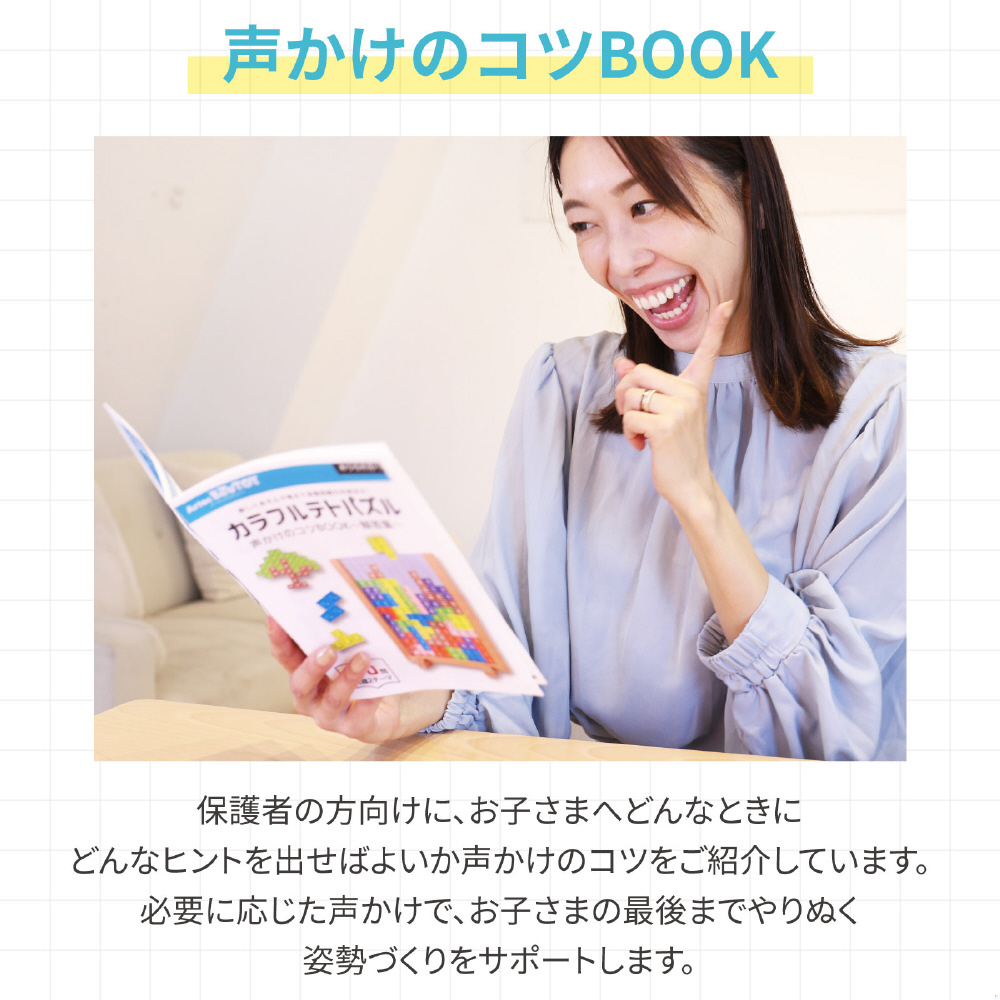 ●声掛けのコツBOOK:子どもがつまずきやすいポイントや、やる気を引き出すヒントが満載!保護者の方向けにお子様へどんな時にどんなヒントを出すべきかなどのお声がけのコツをご紹介しています。必要に応じて声かけをすることで、お子様の成長を手助けできます。