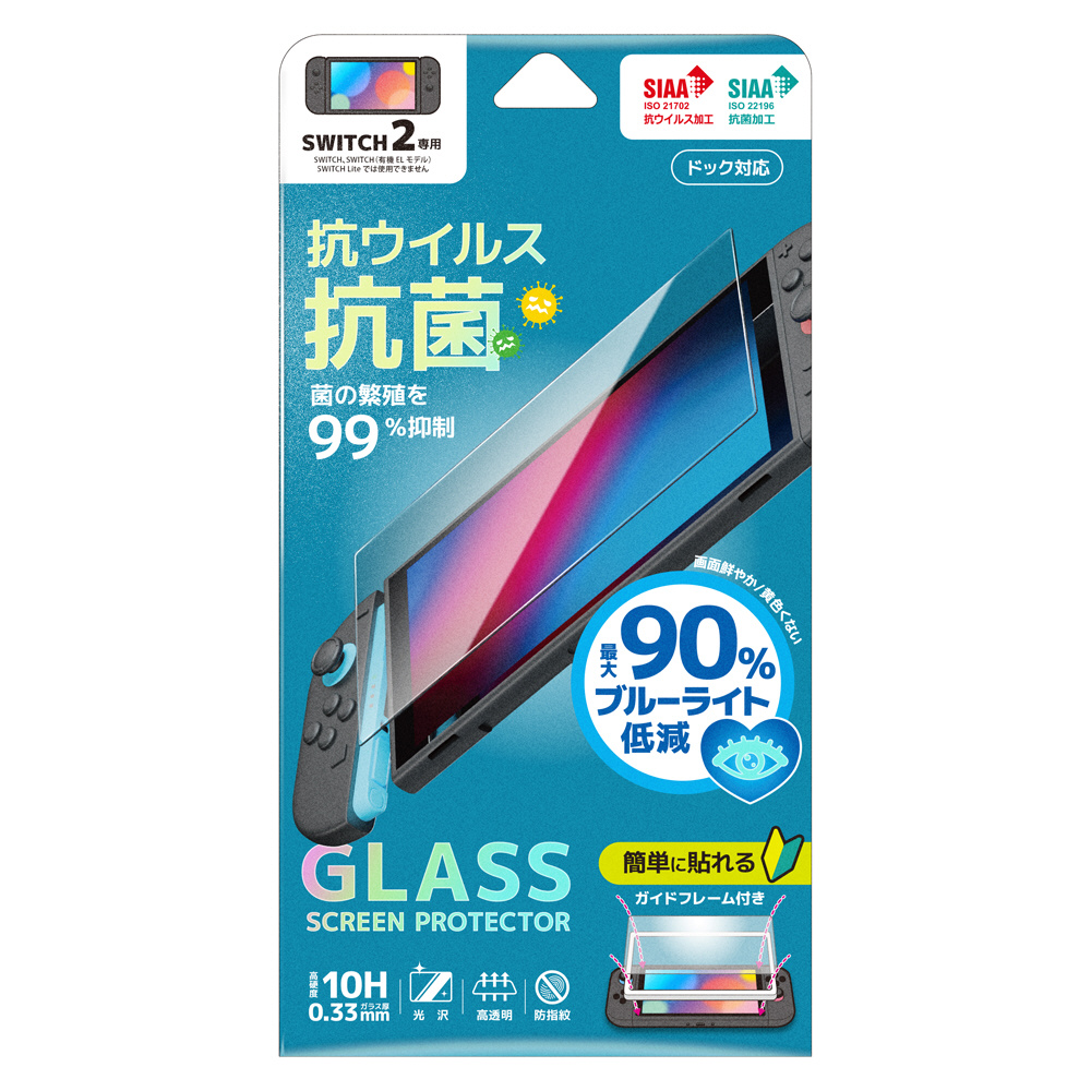 商品名 液晶ガラスフィルム for SWITCH2 ガイドフレーム付属 ブルーライトカット/抗菌/抗ウイルス [NX-NSW2-04BLKV]