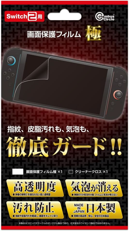 貼りやすく手軽に使える、高品質のSwitch2用画面保護フィルム!「気泡吸収・「指紋防止」・「高透明度」を実現した、まさに「極」の一品です