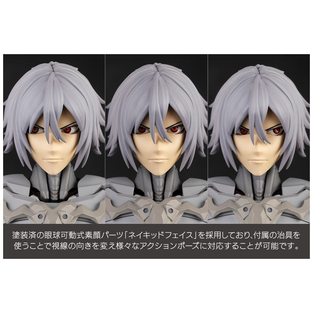塗装済の眼球可動式素顔パーツ「ネイキッドフェイス」を採用しており、付属の治具を使うことで視線の向きを変え様々なアクションポーズに対応することが可能です。