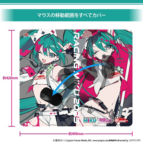 イラストレーターの「望月けい」氏が担当した「レーシングミク 2025Ver.」のイラストを大判サイズのマウスパッドに採用しました。