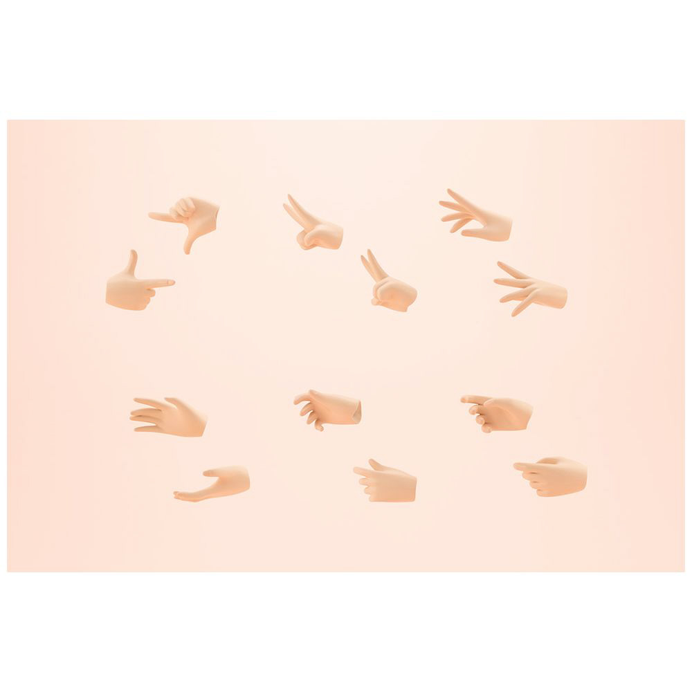 7)手首パーツ6種「優雅な平手」「剣持ち手」「持ち手(狭)」「添え手」「ピース」「指さし手B」×各左右分