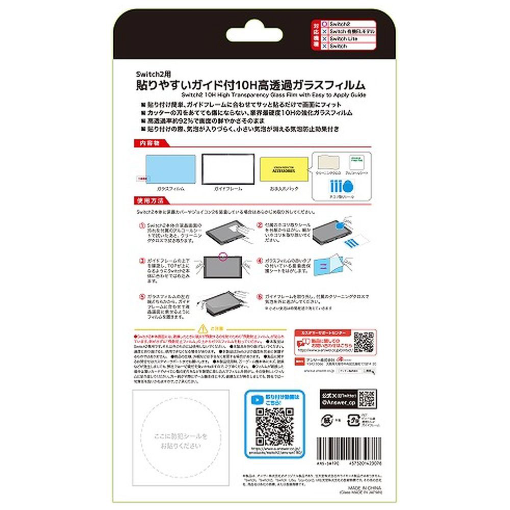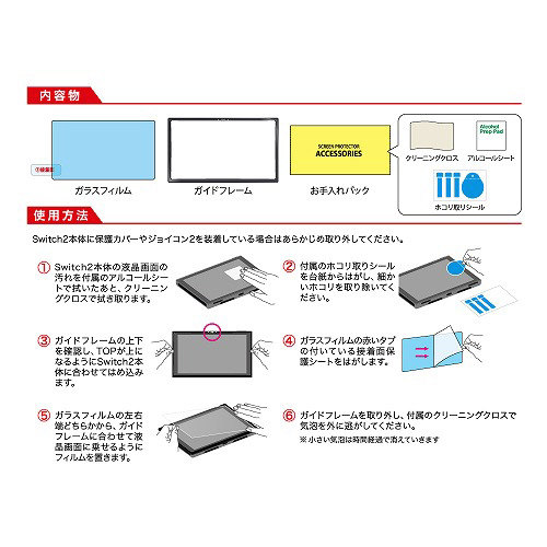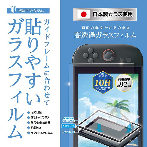Switch2用貼りやすいガイド付10H高透過ガラスフィルム