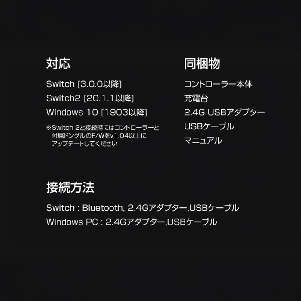 Switch、Switch2、Windows PCに対応した無線Bluetoothゲーミングコントローラーです。有線接続でWindows PCも対応可能です