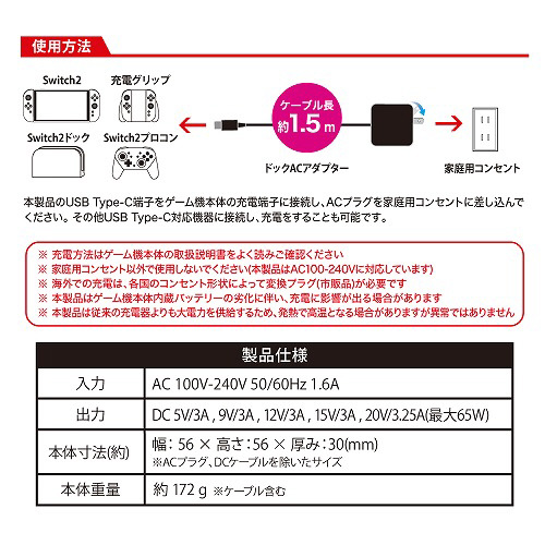 Switch2用 ドックACアダプター