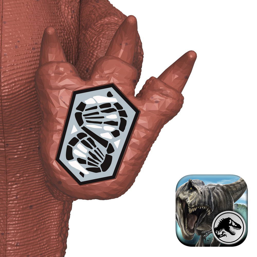 恐竜の足にあるトラッキング・コードをスキャンすると連動する無料アプリ「ジュラシック・ワールド・プレイ」に対応しています。