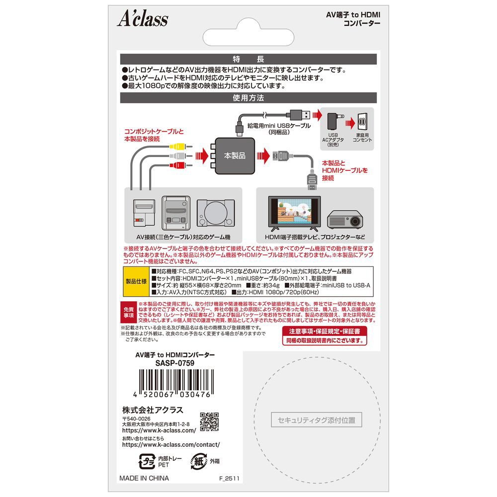| 型番 | AVタンシtoHDMIコンバーター |