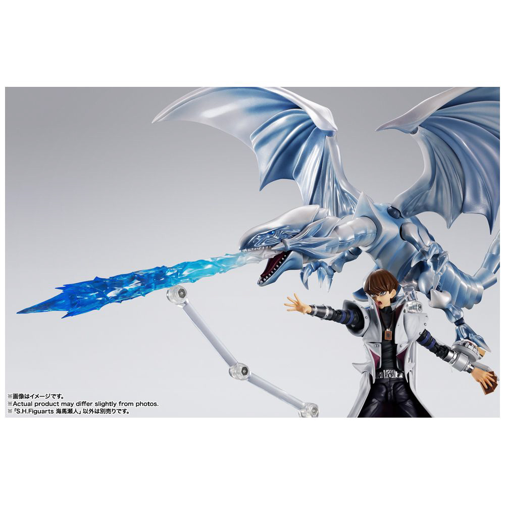 劇中を再現する豊富なオプションパーツに加え、別売の「S.H.MonsterArts 青眼の白龍」と組み合わせて遊べる