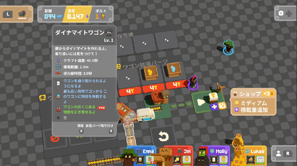 中にはゲームプレイを変化させる能力、新たなエンジンとワゴン、列車構造を作成できるようになる様々な道具をアンロック可能な拡張要素も登場し、