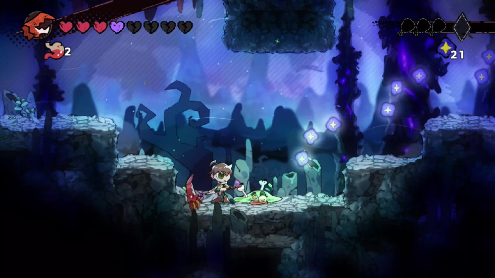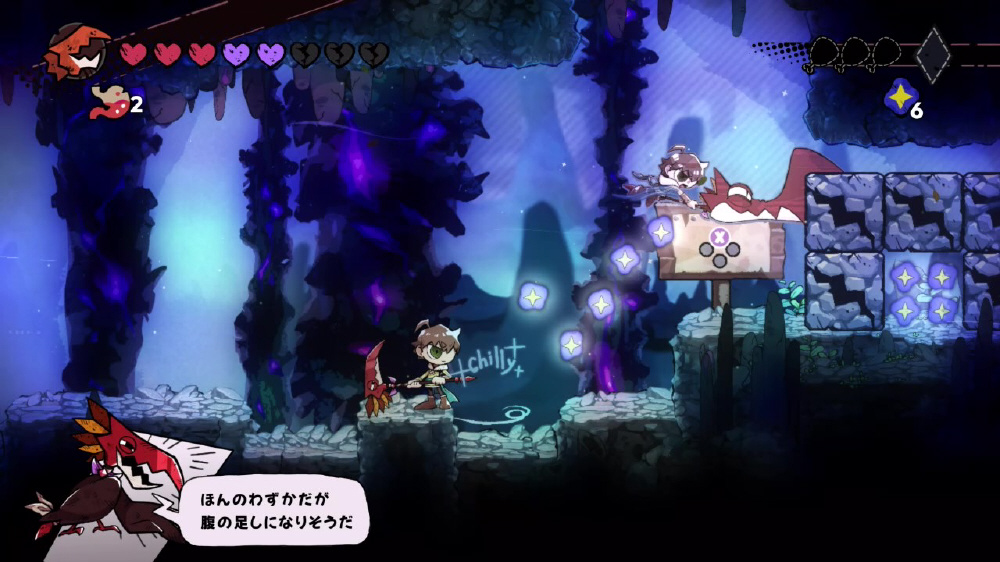 『GOBBLE』は、離れ離れになってしまった家族を探すため、モンスターを捕食し強くなる「鎌」とともに世界を冒険する2D横スクロールアクションです。