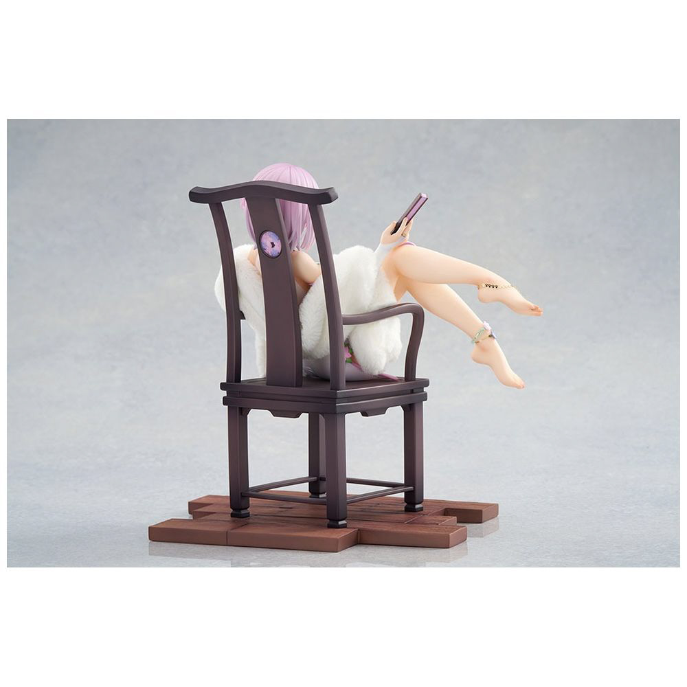 椅子にゆったりと身を預け、扇子を手にした優雅なポーズで立体化。