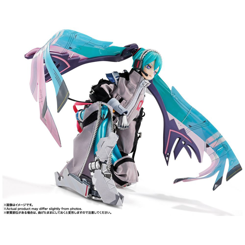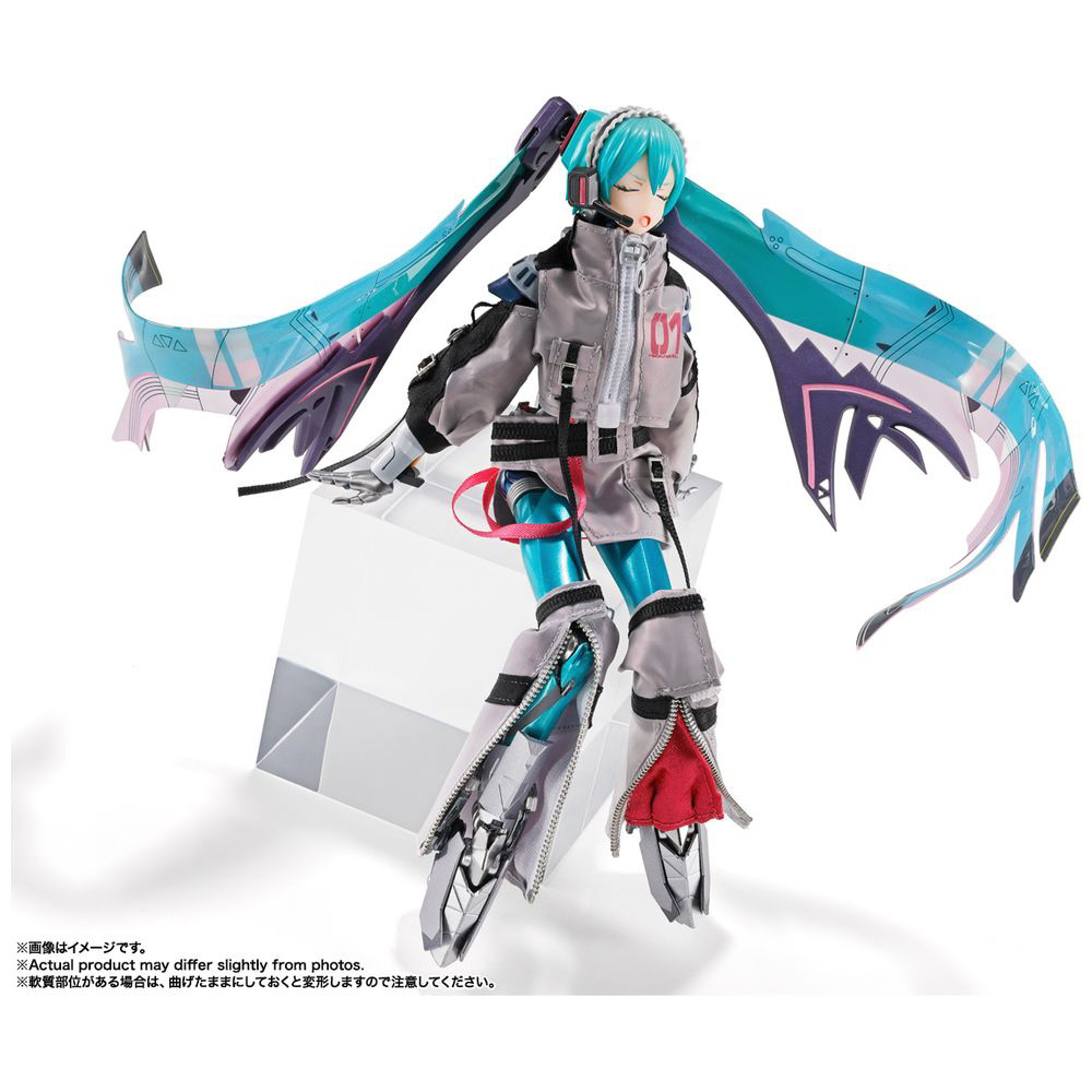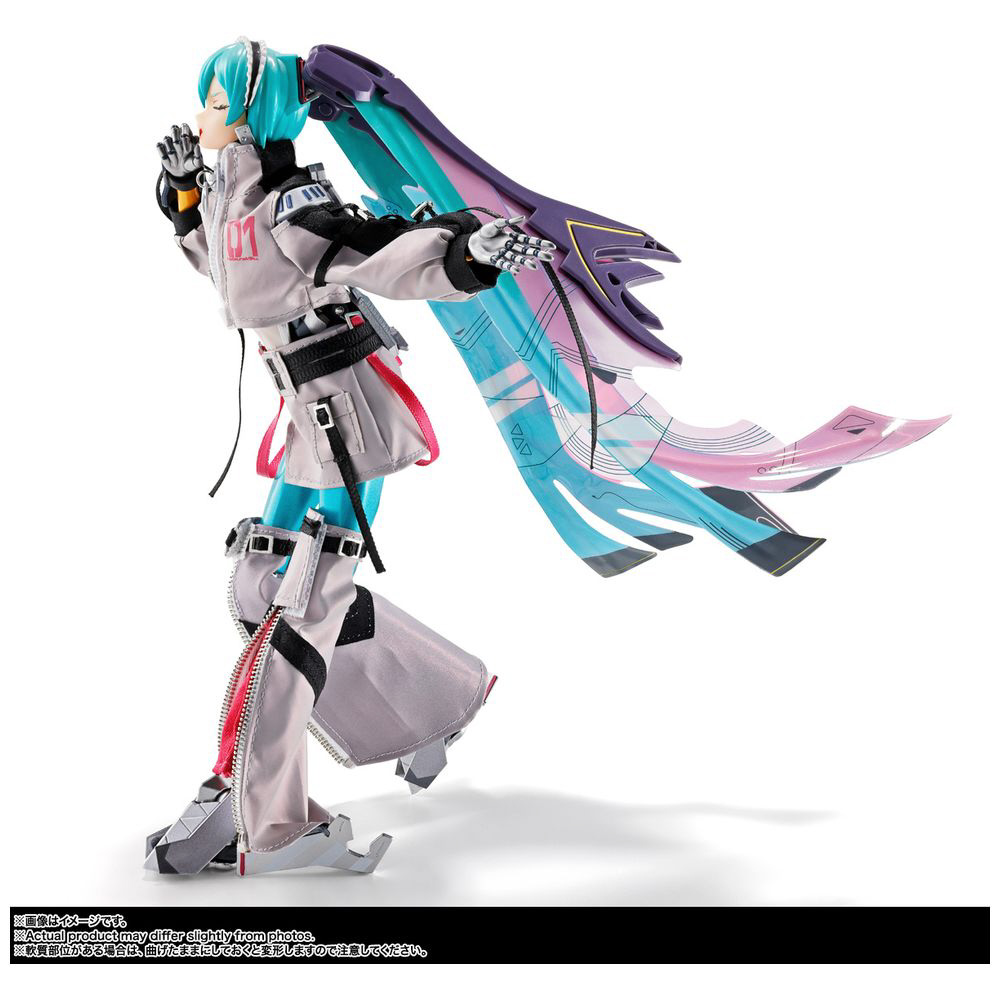 “METAL BUILD”で培われた合金製アクションフィギュアの設計技術をもとに、布製衣装やワイヤー入りPVCシート製ツインテールといった複合素材の使用、