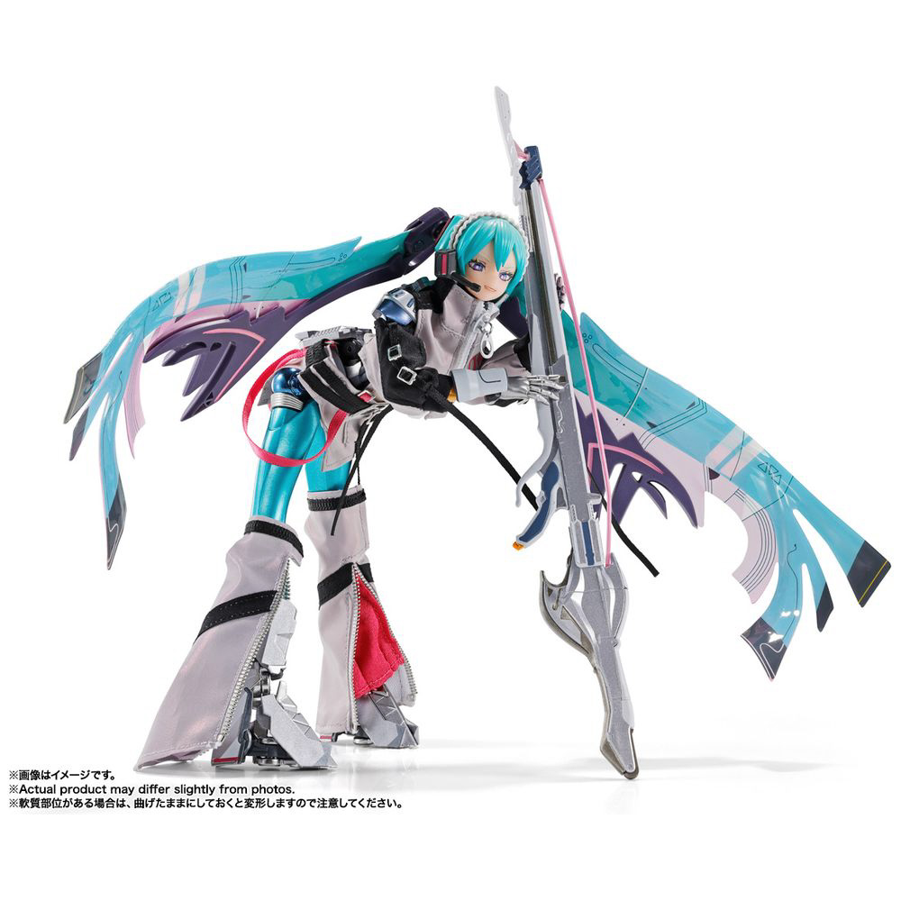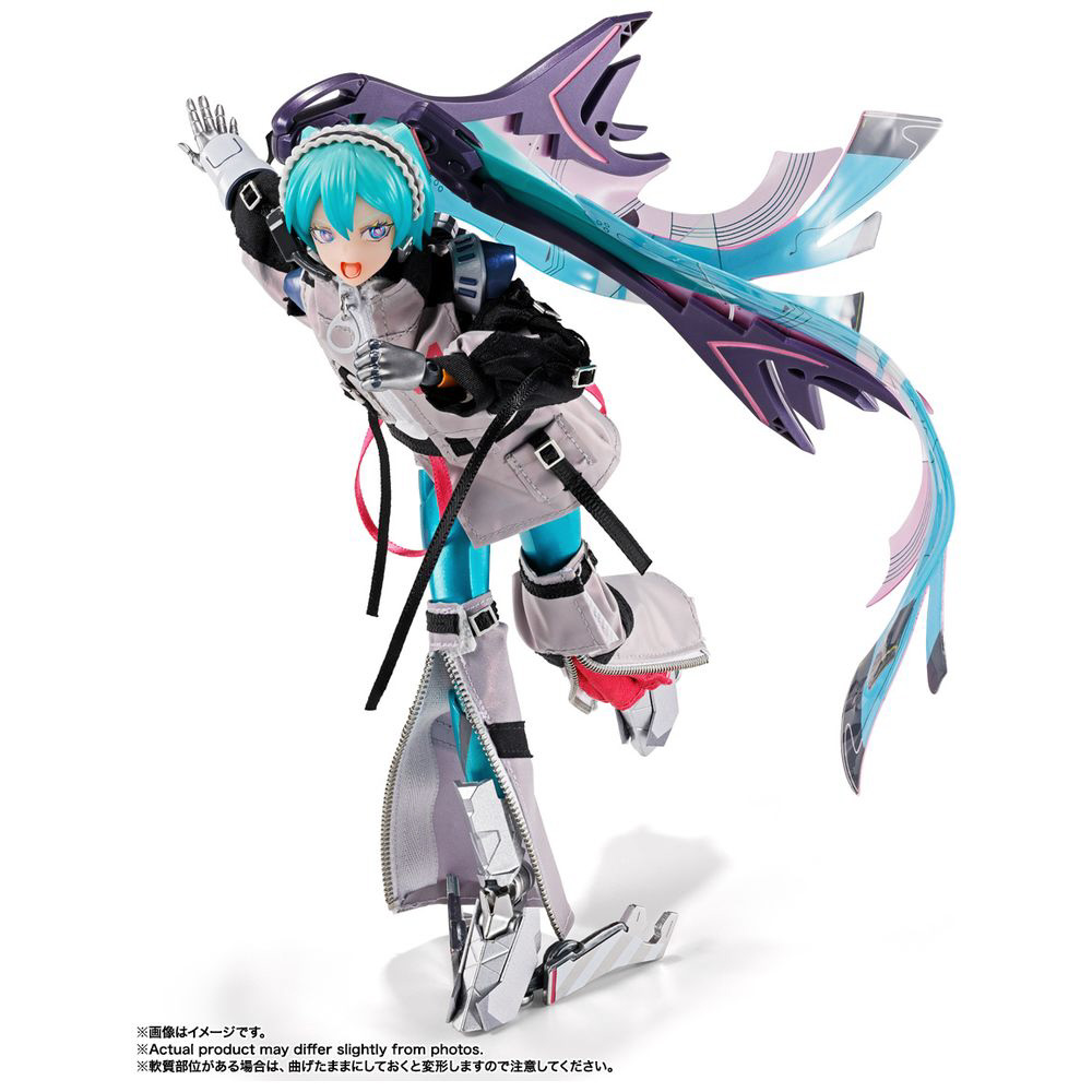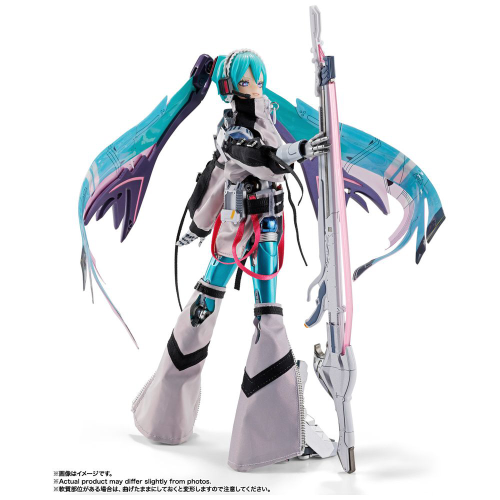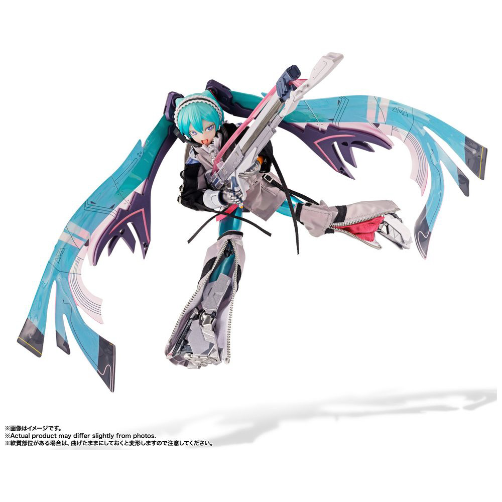 “METAL BUILD”で培われた合金製アクションフィギュアの設計技術をもとに、布製衣装やワイヤー入りPVCシート製ツインテールといった複合素材の使用、