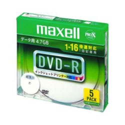 1〜16倍速までの記録に対応したデータ用DVD-Rディスク(4.7GB/5枚入)。
