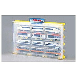 3両編成の車両が4組しまえるディスプレイケースです。レールをつなげれば車庫としても遊べます。