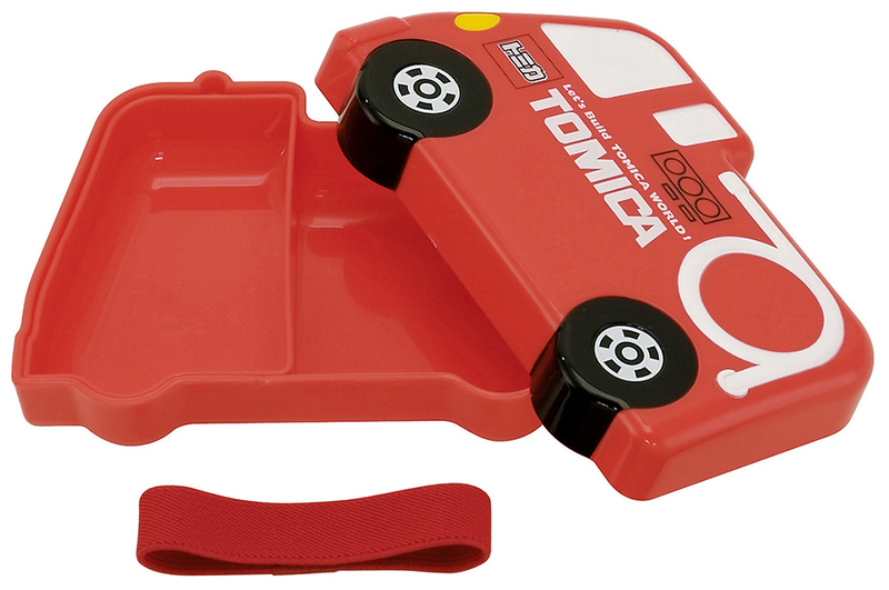 楽しくランチタイム。カッコいい消防車の形をしたトミカのお弁当箱です。被せフタにランチベルト付なので安心して持ち運びできます。