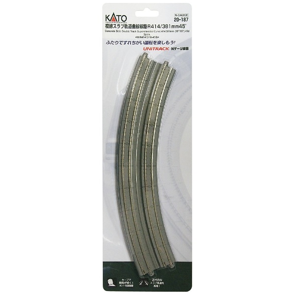 【Nゲージ】20-187 複線スラブ軌道曲線線路 R414/381-45°(2本入)