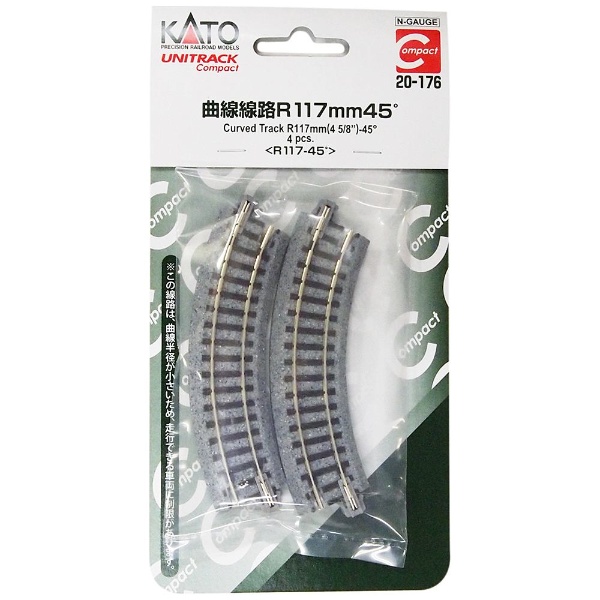 【Nゲージ】20-176 ユニトラックコンパクト曲線線路 R117mm 45°(4本入)